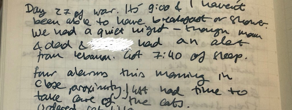 But this isn’t what this post is about. It’s about journaling in a poorly lit bomb shelter with little privacy and the journal balanced precariously on your knees. It’s about the soldiers who journal in the battlefield, writing in the margins of their Bible. It’s about the patient journaling in their hospital bed, using an exercise book and the cheapest pen they could find (because the good stuff gets stolen). It’s about the achingly tired parent scribbling a few words when their child finally drifts to sleep.
