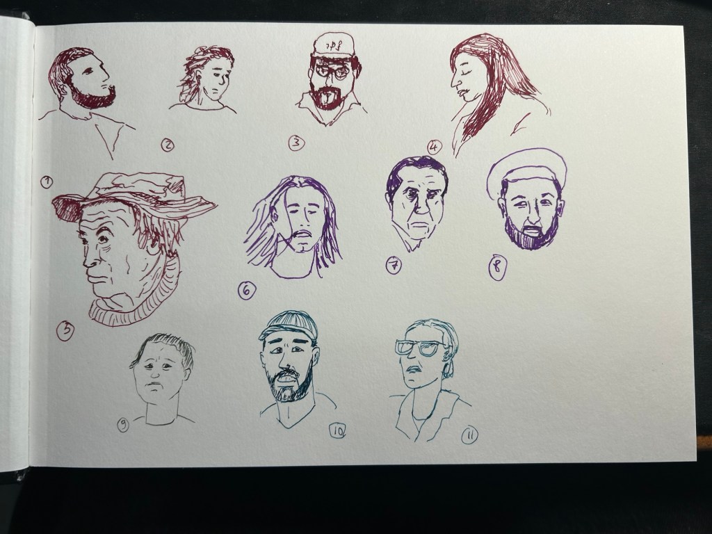 The result is sketches 12 to 40 (yes, I got that many done in a single sitting). The fact that I have much better reference photos made such a huge difference, as I didn’t have to waste time digging through urban landscape photos in search for half decent portraits. Also, the Earthworld photographs feature People with a capital P – frumpy, old, ugly, real and incredibly beautiful to sketch. The great Leonardo Momento Zero Bohemia Twilight fountain pen with its fine nib and Diamine Fireside Snug also added to the fun – I love this pen and ink combo so much I’m likely going to use it for the rest of the 60 sketches.