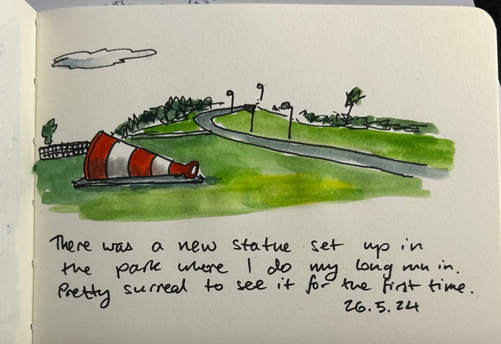 I then sketched one of the scenes from the 2024 Paris Olympics Breaking final, which I was going to see in person before I had to cancel my trip. Luckily my brother was there and sent me photos and videos, which I had fun sketching from. There was a lot of purple in this scene, so I had fun mixing Rhodenite with blues and purples on my palette.