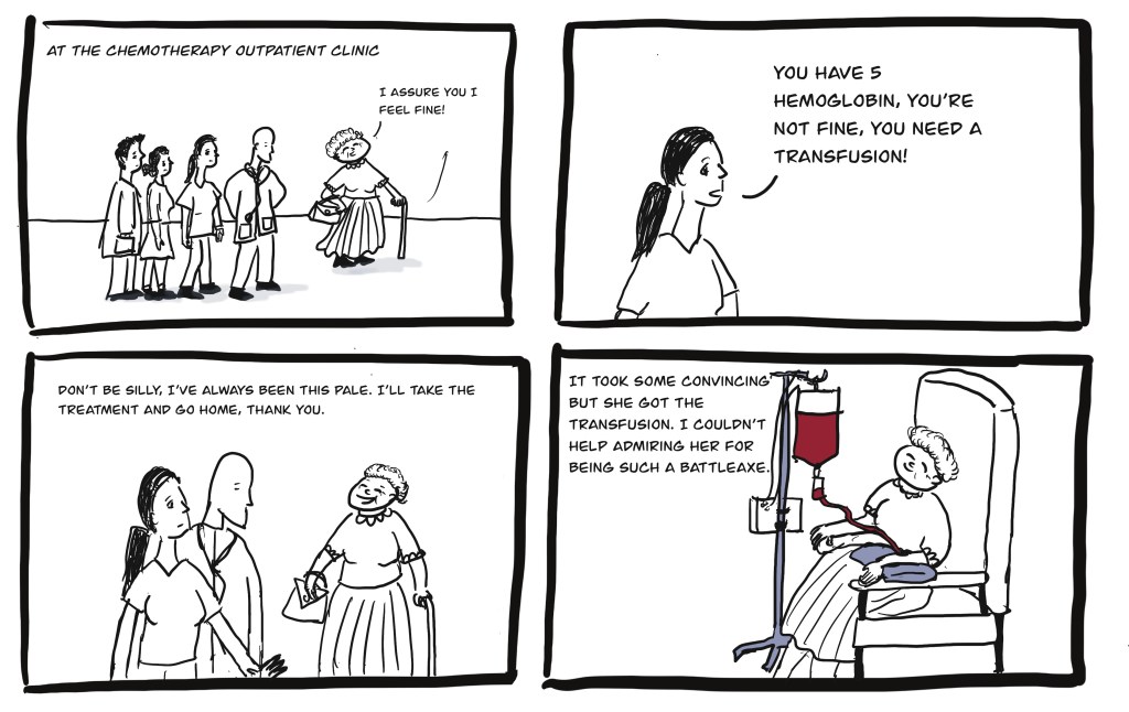 And anaemia spells poor outcomes wherever it appears, which is why oncologists aggressively combat it, with medication or with blood transfusions.