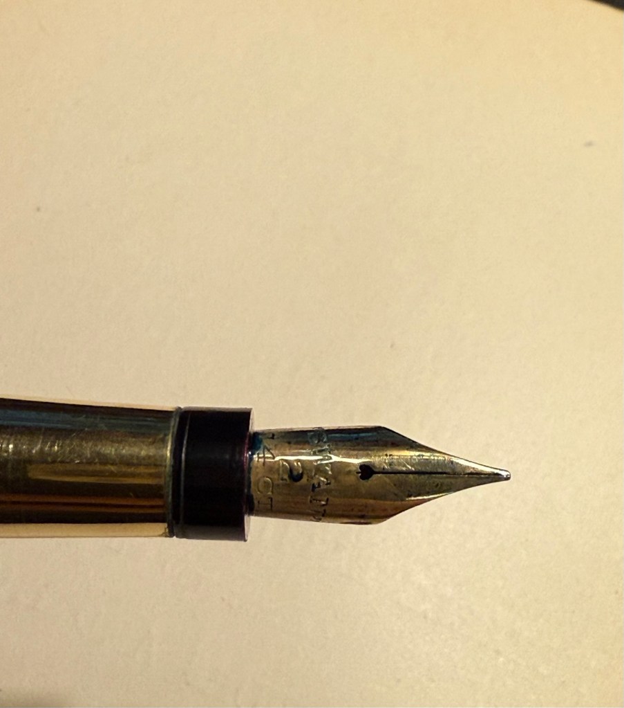 I chose a Waterman ink for it because they’re the best inks for vintage fountain pens – very gentle, very easy to clean out of a pen, non-staining, and on the dry side (though not as dry as Pelikan 4001 inks) which works well with this very generous nib.