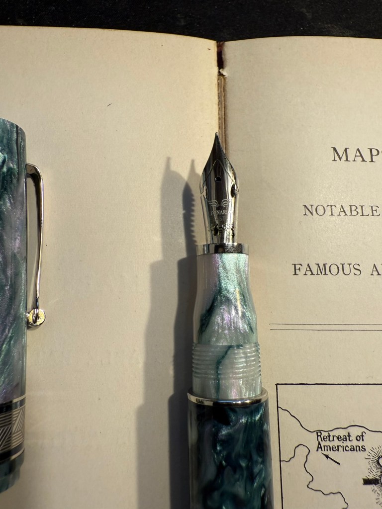 The Leondardo’s elastic or “flex” nib has cutouts in the nib shoulders to provide it a bit of give. It’s a nice nib that offers some line variation, but is nowhere near what you can get in vintage flex or super-flex nibs (particularly Swan and Waterman).