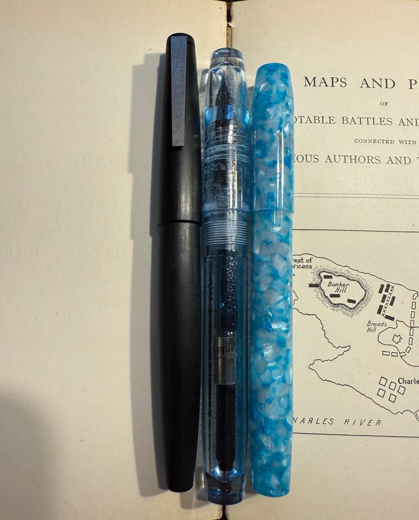 From left to right: Lamy 2000, Franklin Christoph Model 46 Polar Ice, Franklin Christoph Model 45L Turqish Crush