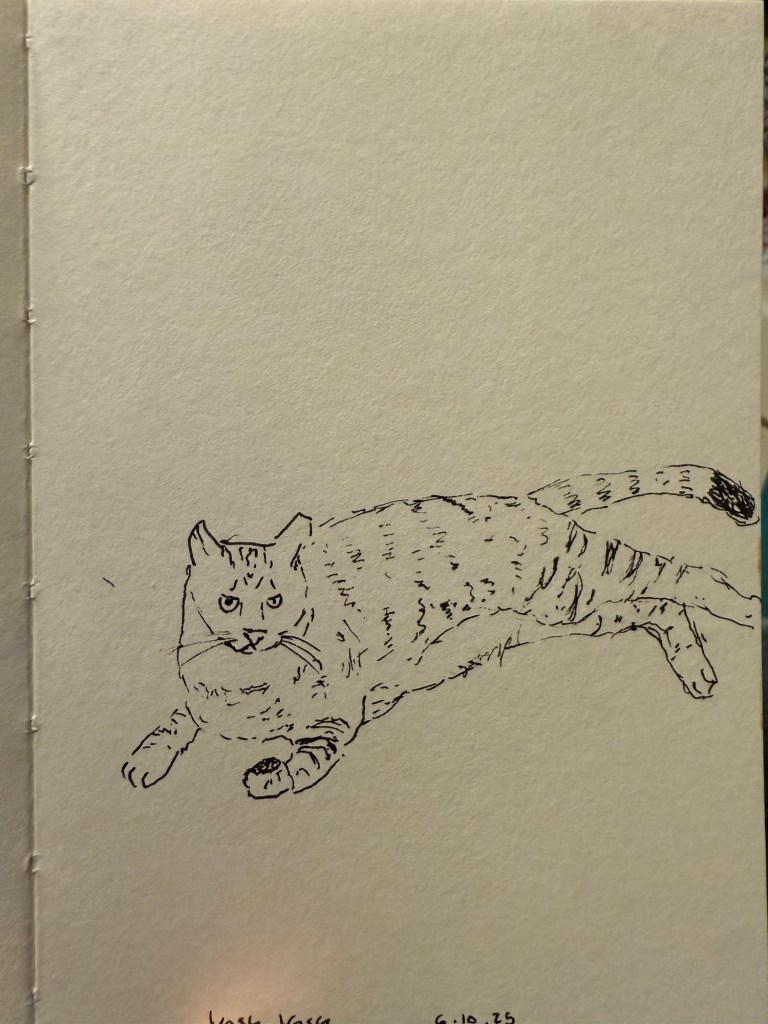 I am really enjoying my Pith sketchbook, and I’ve been taking it with me almost every day and sketching a lot more. My brother’s cat: