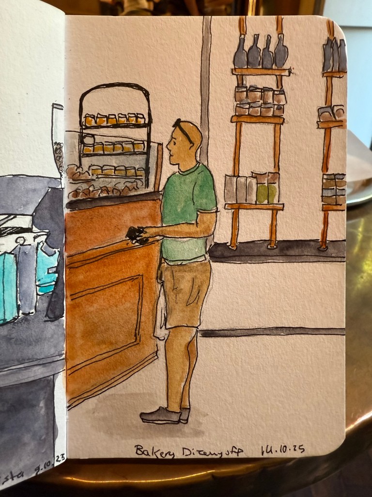 As many in the Urban Sketchers community use Instagram I started using the app before the symposium (I didn’t have it installed on my phone beforehand), and I got into the unfortunate habit of using it. Earlier this week I deleted it and logged out of YouTube on my phone, as I’ve been wasting time on there too. It’s been a relief – I’m not posting my sketches there, but I realized that I don’t really have an audience there – I’m just unpaid labour for billionaires. It’s bad enough that AI bots are scraping my site for content, but I don’t see a reason why I should allow my brain to be addicted to the slot machine tactics of an ecosystem that relies on me spending as much time as possible there to make its money.