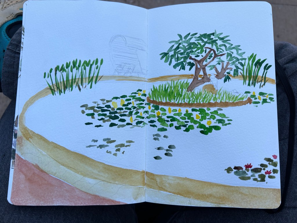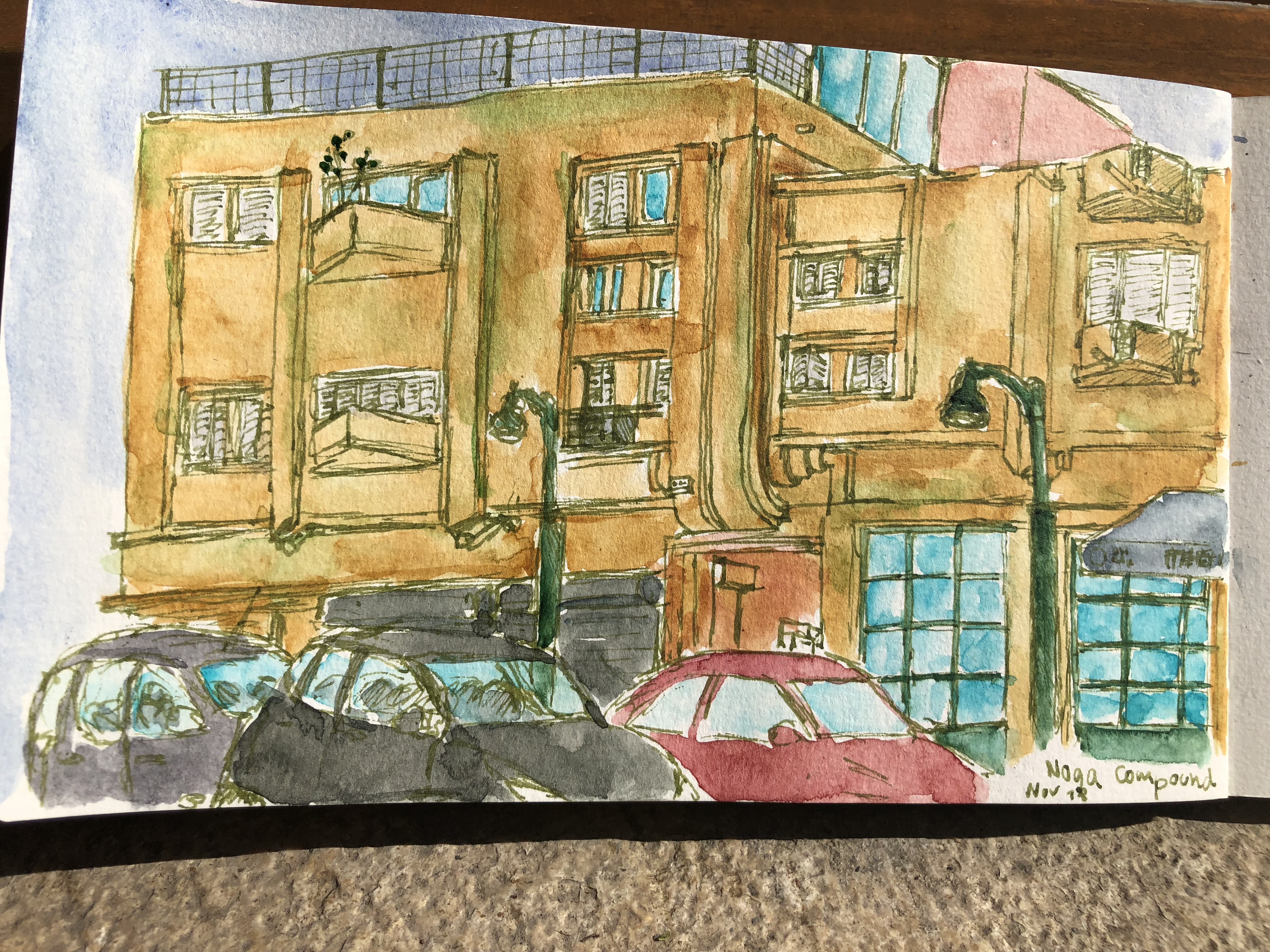 There was a group of ping pong players nearby, and I got hit by balls several times. I was also visited by several curious children. It’s all part of the Urban Sketching charm.
