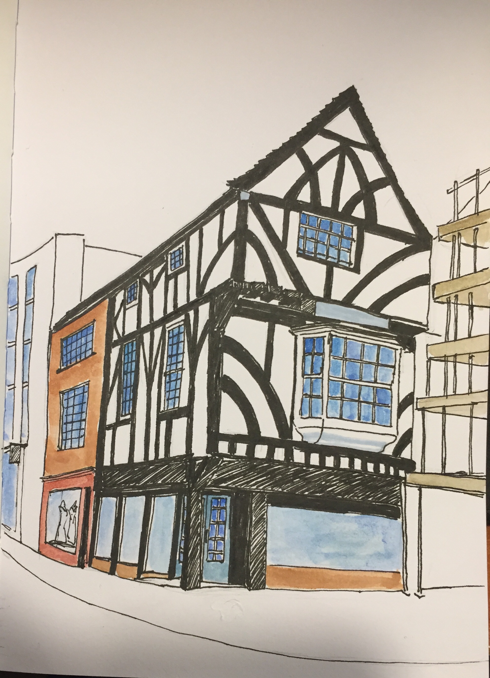 Just back from a trip to London and York, and still sorting through photos and experiences. This is a quick sketch I made over coffee on Sunday morning in Seven Dials, Covent Garden.