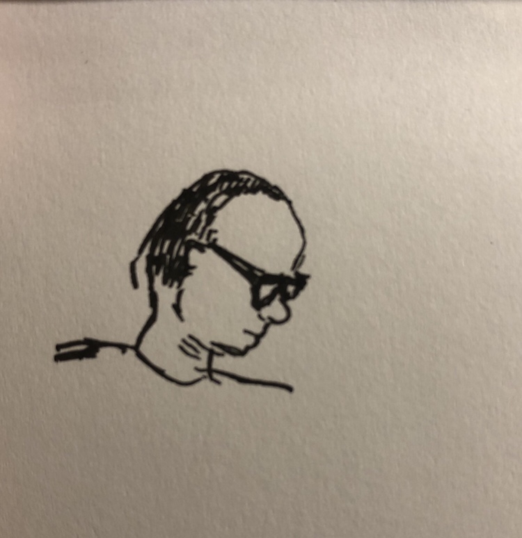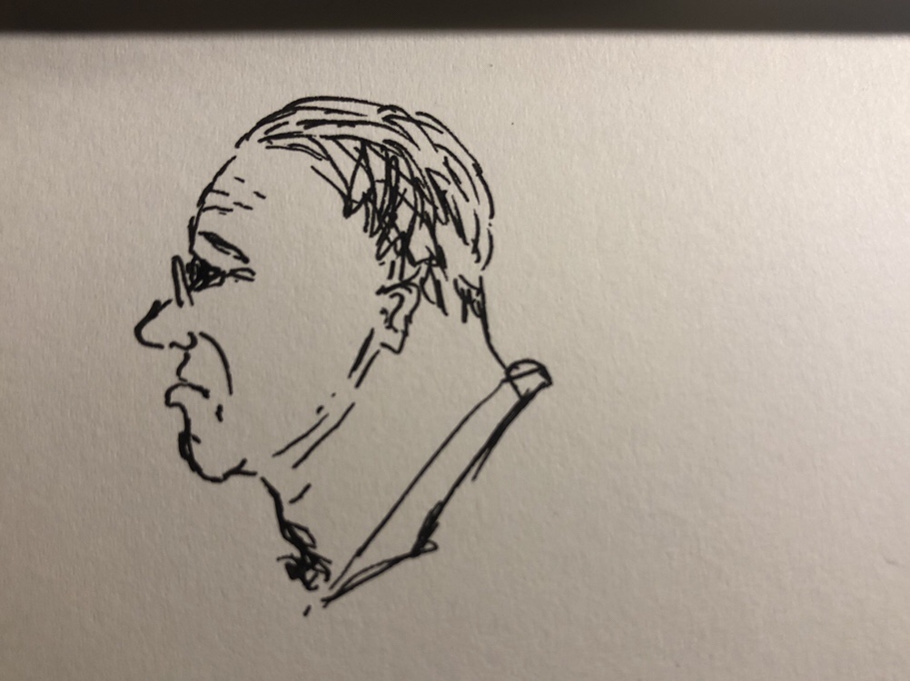 I had a busy day, so it was a very quick sketch this time, of a brown toy poodle sitting on her owner’s lap on the bus. She was quite the attraction, and reminded me of my old dog in the pure joy she took from everything around her.