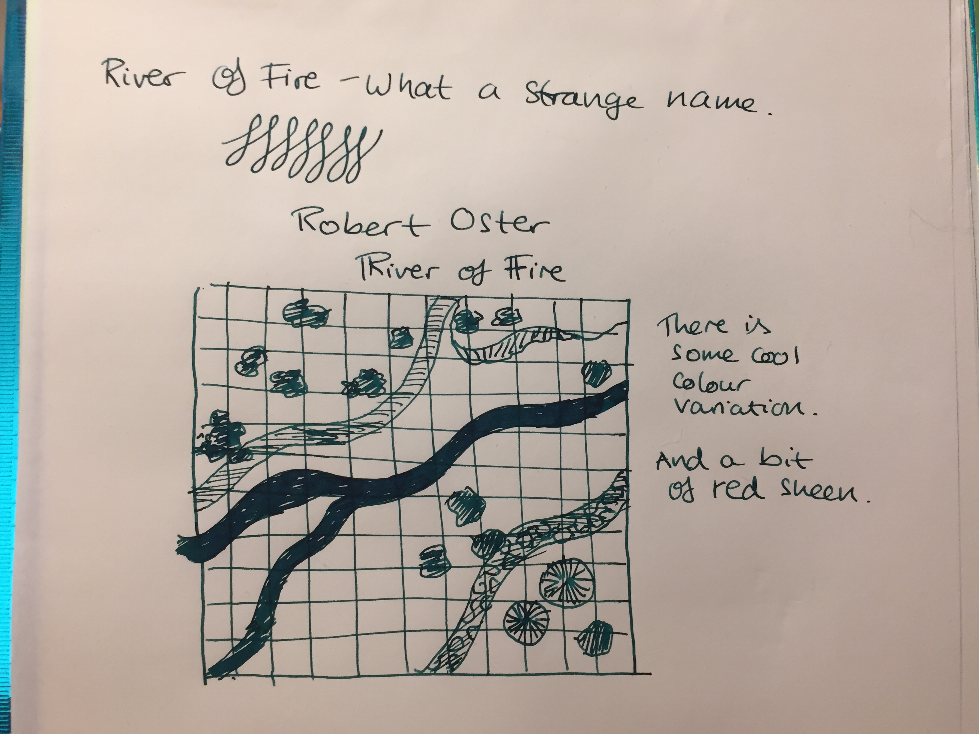 Esterbrook Estie Sea Glass Journal nib with Diamine Aurora Borealis. I love the Journal nib, and it really shows off the gorgeous teal of Aurora Borealis. There’s some shading with this ink and a hint of red sheen. This ink is one of the few I own in both bottle and cartridge format.