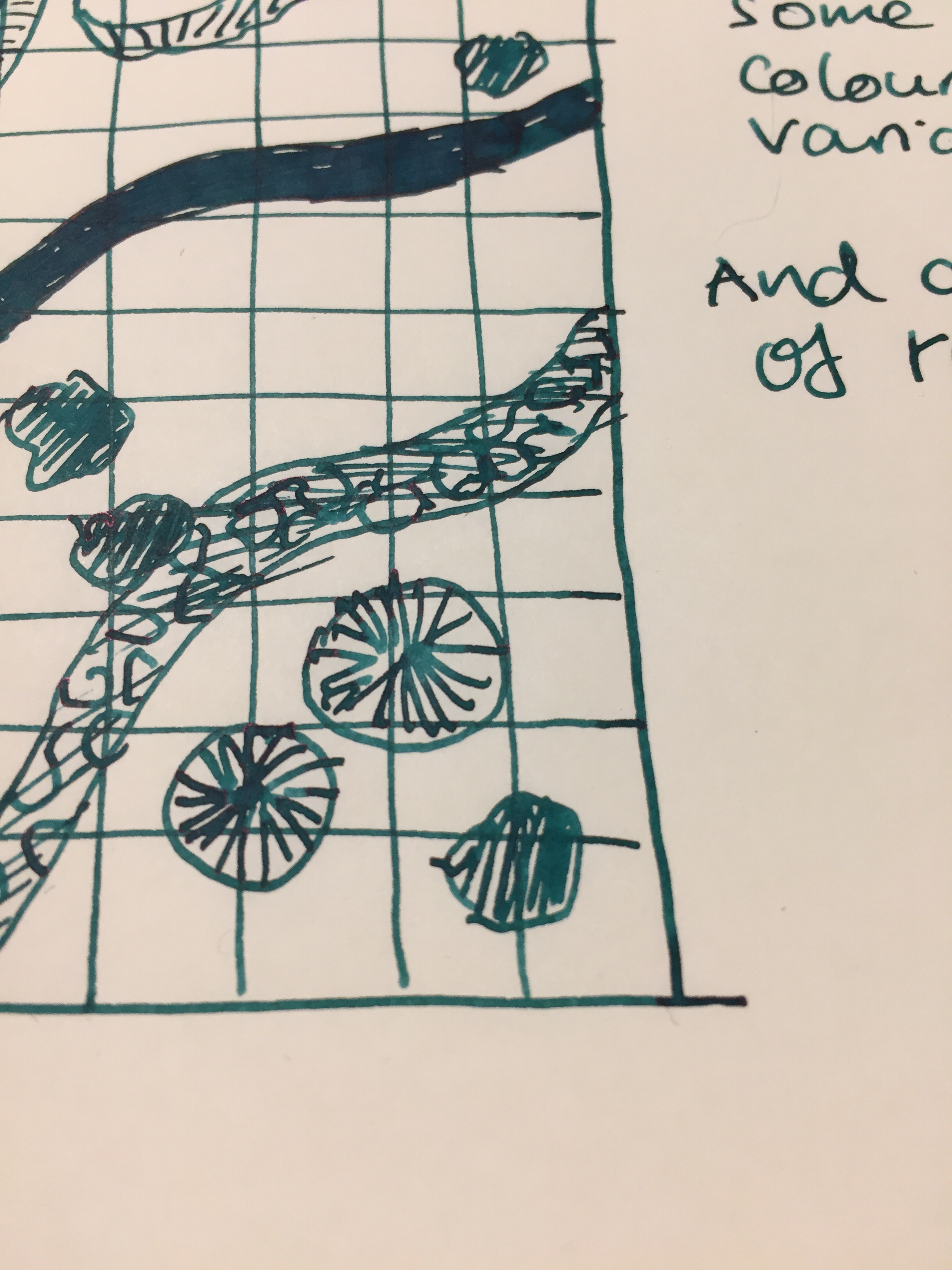 Pilot VP Matte Black M nib with Pilot Iroshizuku Chiku-rin ink. I used to use my VPs a lot more, especially to take notes in meetings, but now I rarely use them because they have a tiny ink capacity and are a bit of a pain to clean out. They do have beautiful nibs, and I wanted a cheerful green ink so the pairing works well.