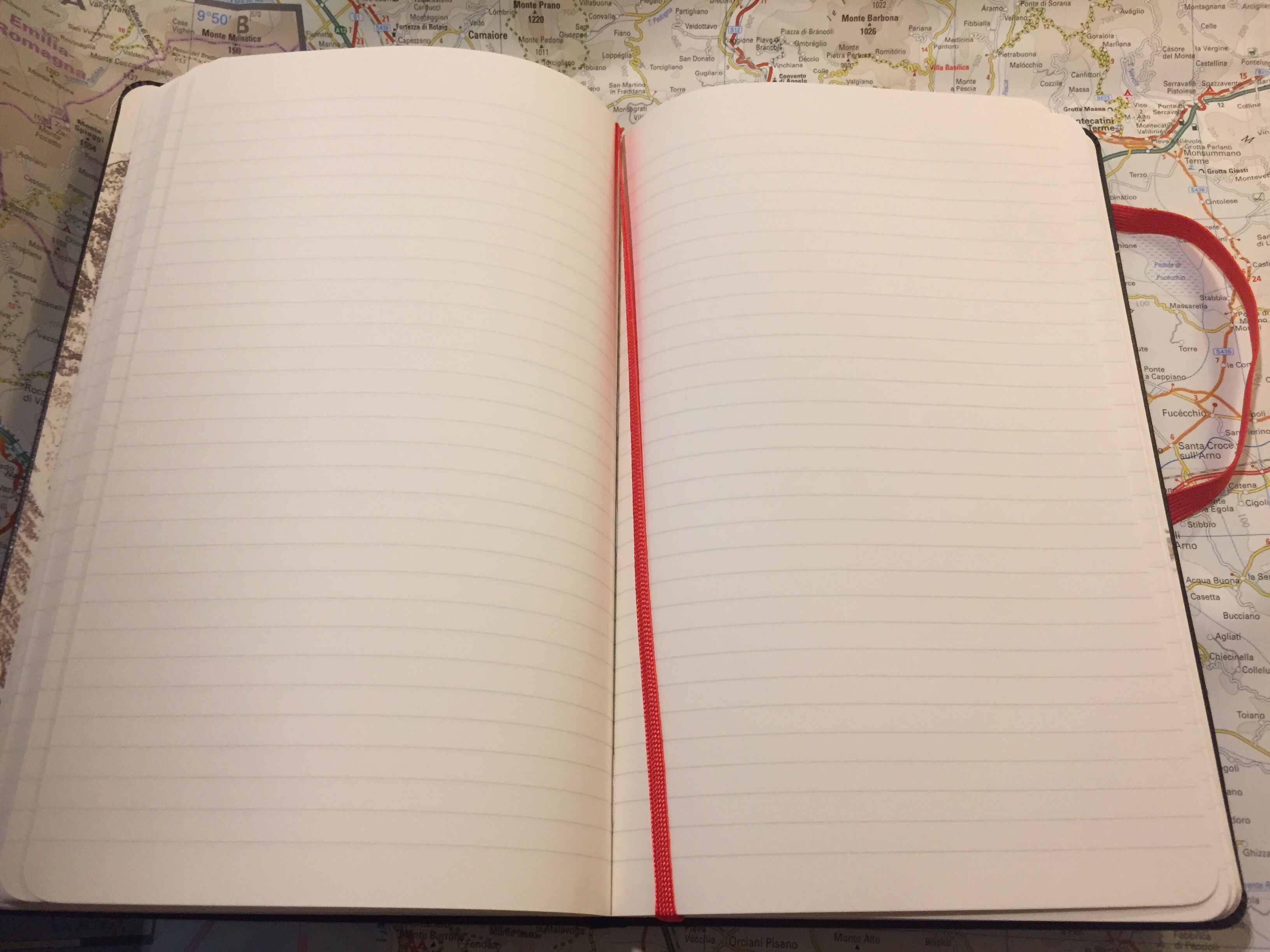 This is a ruled notebook, and it comes with a red ribbon bookmark. Unless you use inks like Noodler’s bulletproof black, it isn’t fountain pen friendly. Then again, it isn’t marketed as such (Moleskine has other notebooks for that).