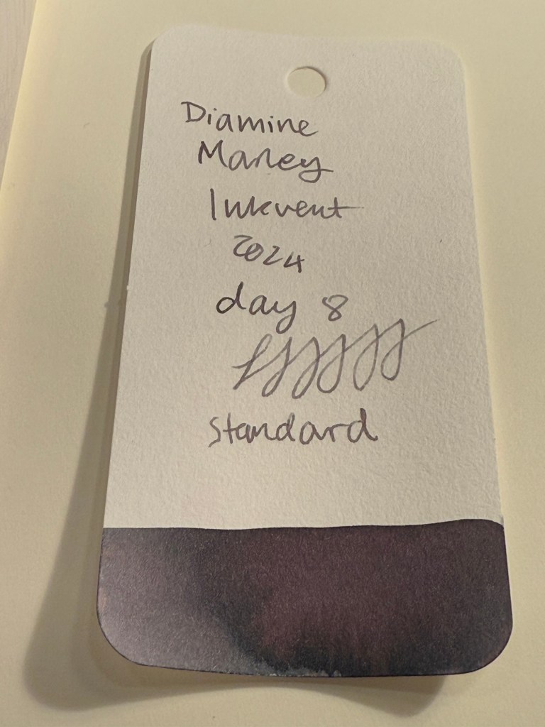 Day 8’s ink is Diamine Marley, a purple grey standard ink that is actually multi chromatic, like some of the Sailor Studio inks. I used a Lamy Safari with a Fine nib to test out this ink.