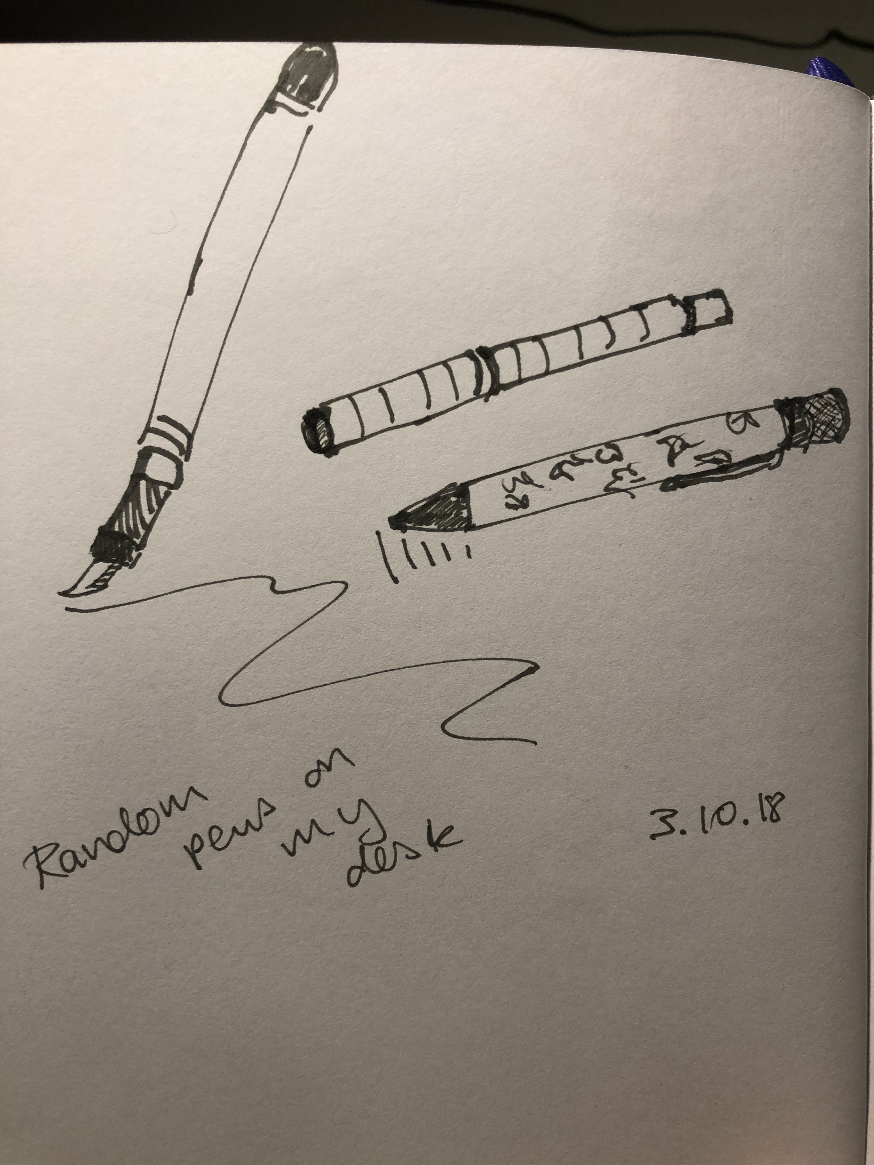 If you are looking for a pigment ink you are either writing something that you think may get damaged by water, or more commonly, you want to use it for sketching and go over the ink with a wash. For these purposes Diamine Brrr! Would have been perfect if it didn’t have shimmer in it. Yes, it’s an unusual colour for sketching with, but I have sketched with blue ink before (and many sketchers use blue ballpoints in their sketches) and it works well with watercolour washes. The idea of an ink in this scenario is that it can fade into the background, it can work well with others.
