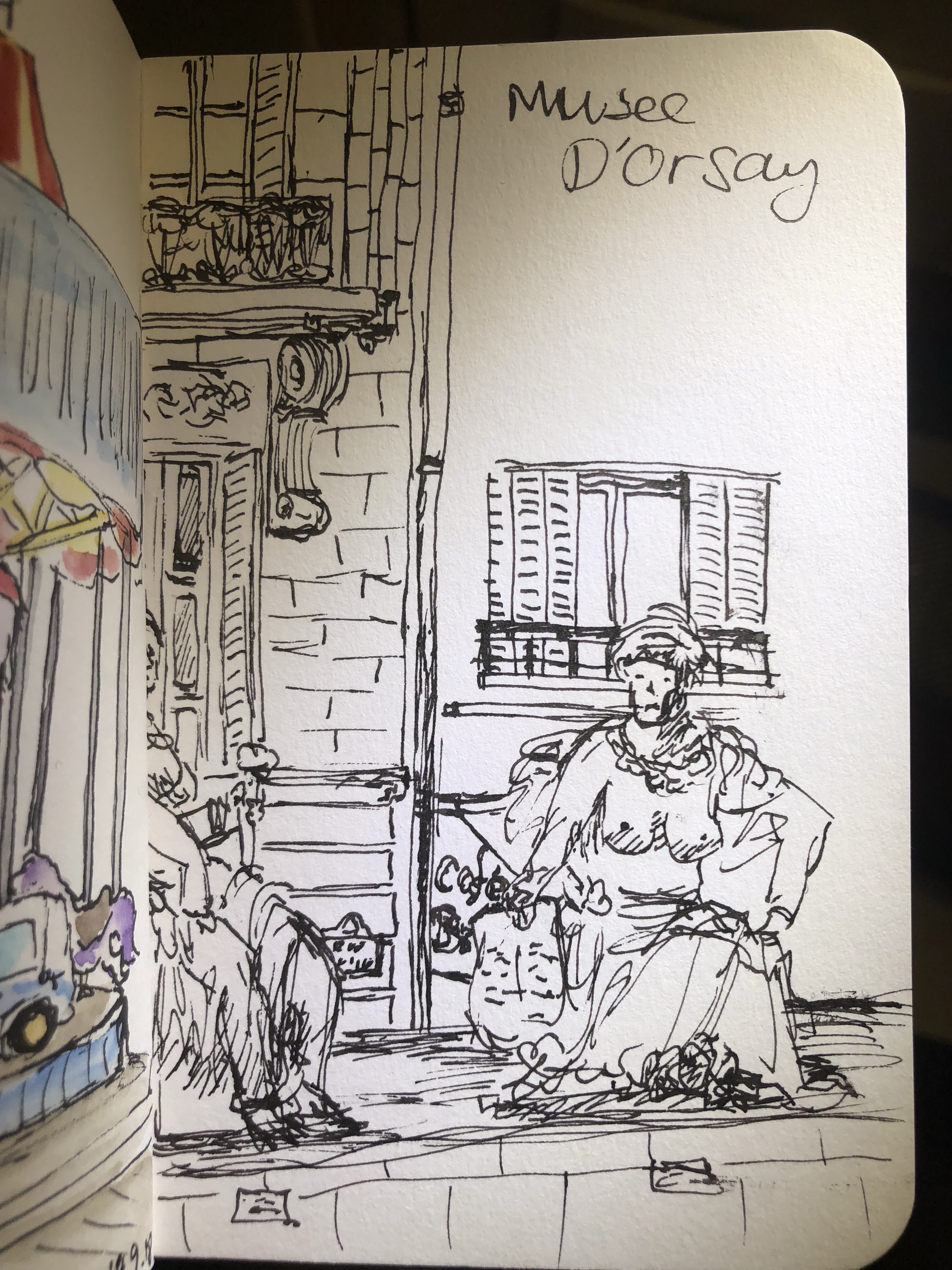 The museum was in between putting up exhibitions, so while a large part of it was closed we managed to view some great and moving art pieces with relatively few crowds and at a discounted price. I did a VERY quick sketch while I was there: