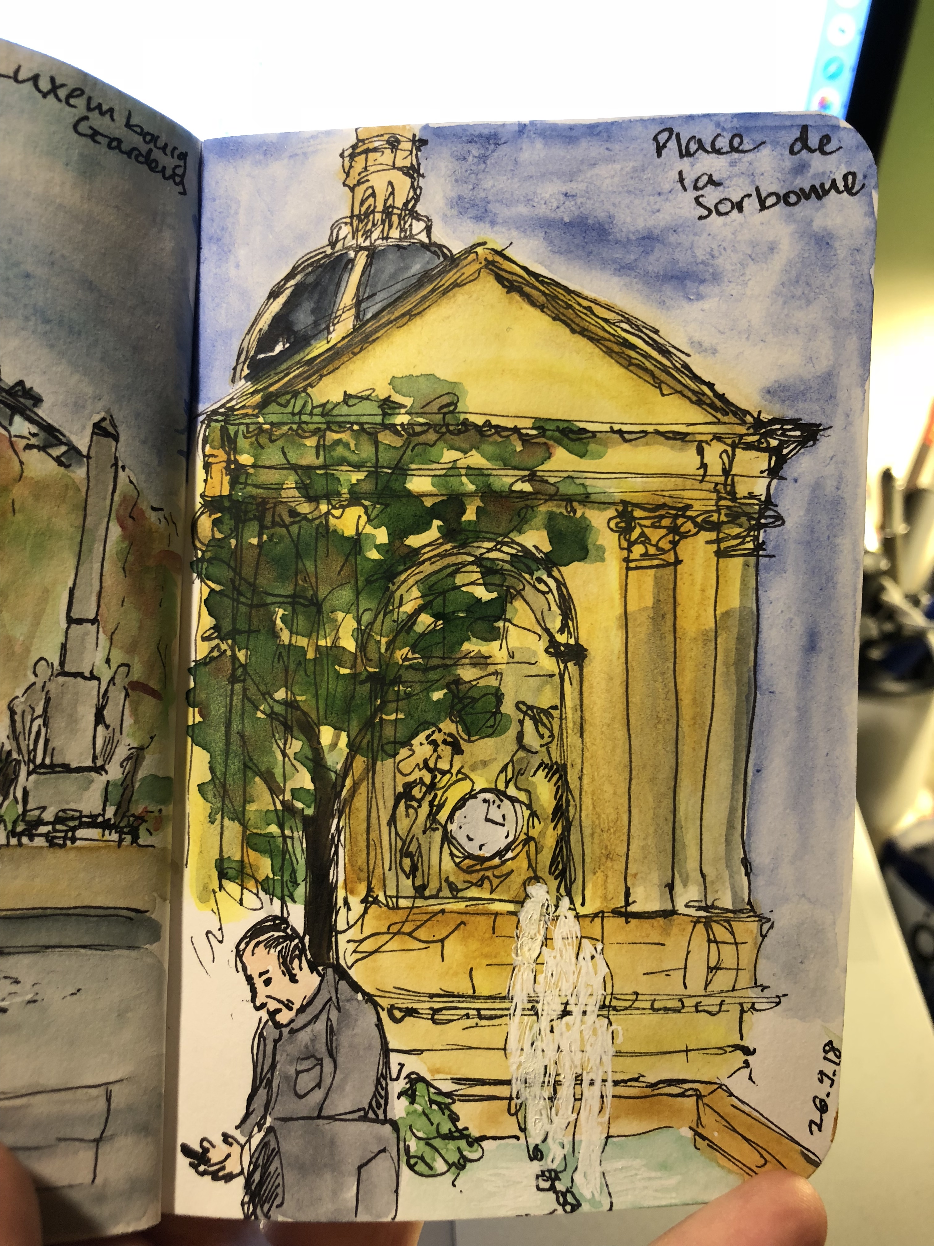 I recently returned from a pretty long trip to Paris and London with my family. I ended up sketching a lot more than I normally do during trips, largely thanks to things that I learned during the Urban Sketchers Symposium in Poznan (more on that in a later post). Here is part 1 of some highlights from my trip.