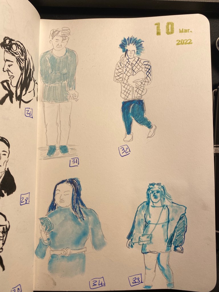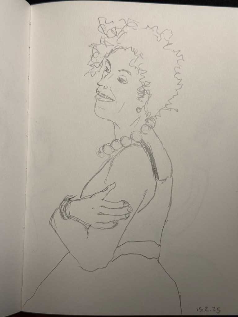 As I expected I didn’t reach 100 people sketches in 5 days, but I still intend to get to 100 sketches, so I’m plowing on. My hands are still wrecked with neuropathy so today’s sketches are all pencil sketches, all of them using various Blackwings. Hopefully tomorrow I’ll be able to get back to ink and watercolour, but if not I’ll break out my vintage pencils and give them a spin.