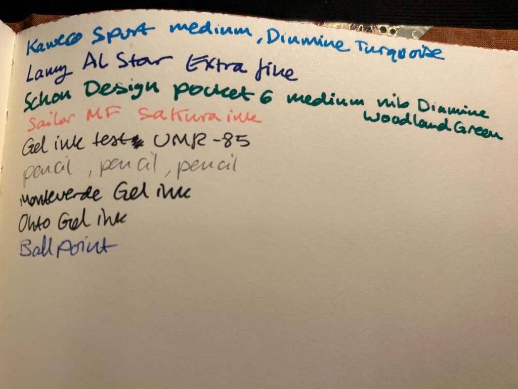 It’s nice to have new pens and inks in rotation. I’m enjoying Diamine’s Writer’s Blood more than I expected, Diamine Autumn Oak is fantastic with a Waterman superflex nib, and Pilot Iroshizuku Tsuki-yo is becoming one of my favourite inks.