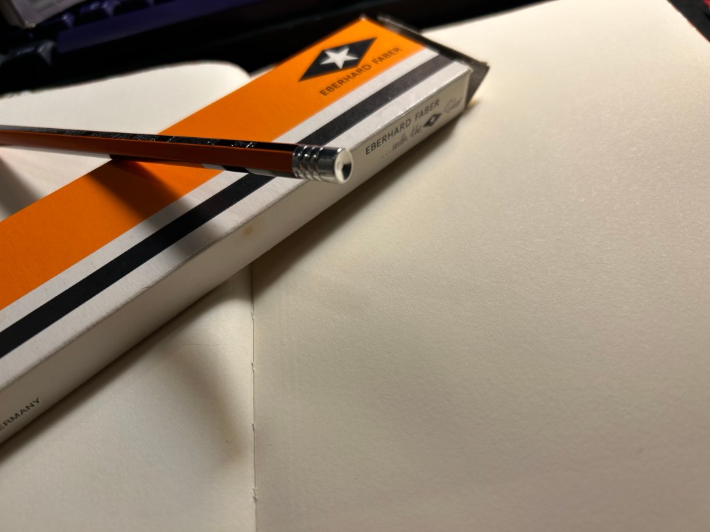 It’s a soft, velvety kind of paper, which made me thing that it might work with pencil quite well. I also had some pencils I wanted to try out, so it seemed like a good opportunity to not let a fancy notebook go to waste.