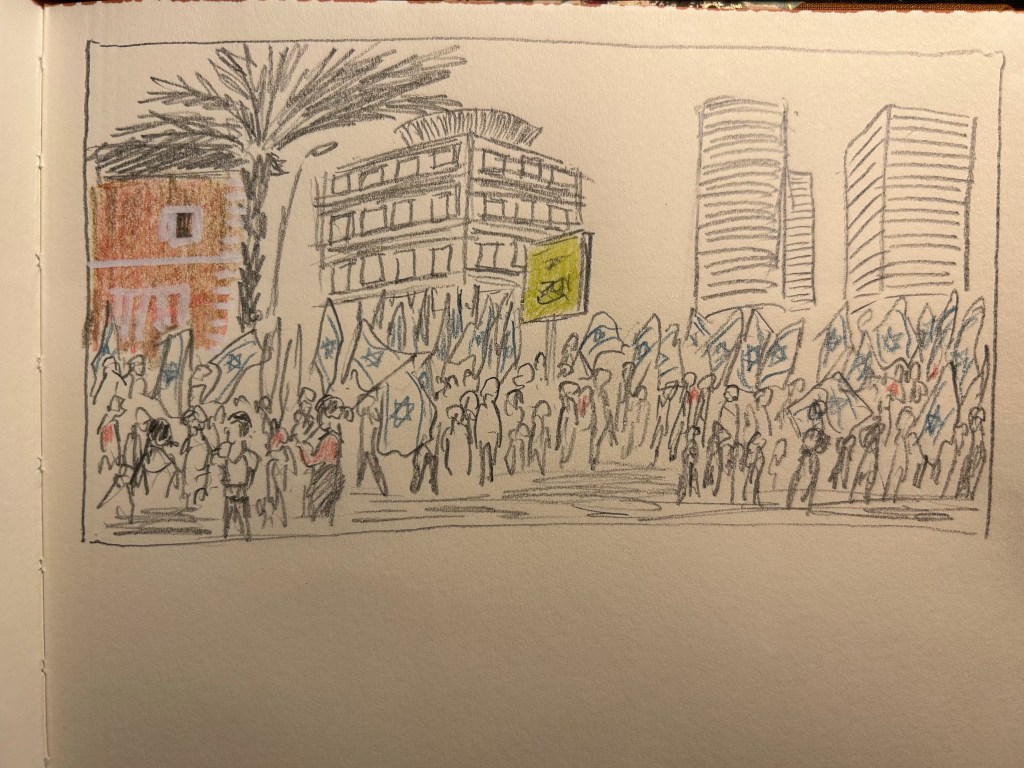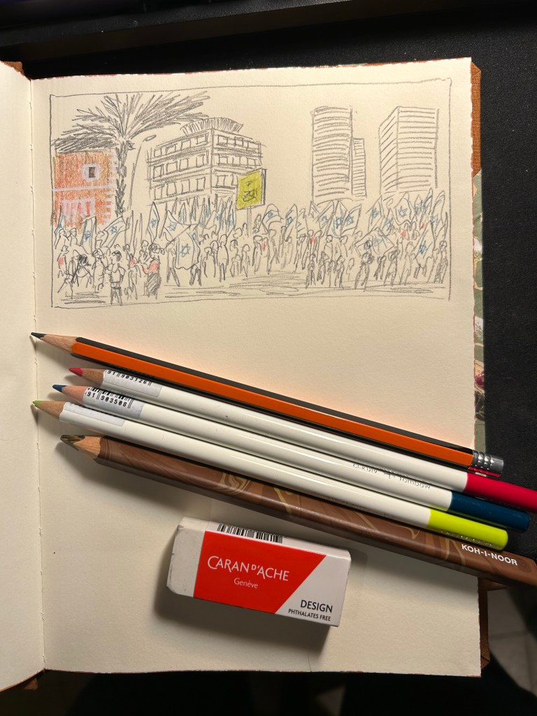 I then sat down to create this quick sketch of the latest round of pro-democracy protests. The pencil was a joy to use, and it worked very well on the paper. I was very happy with the feel of them both, and with the sketch results: