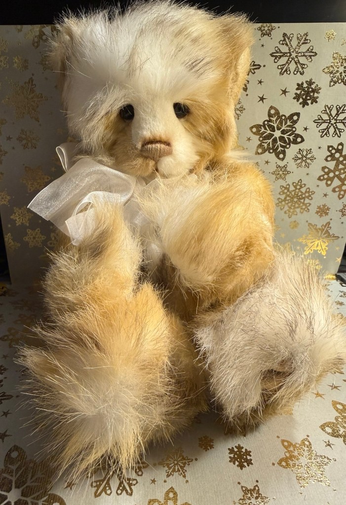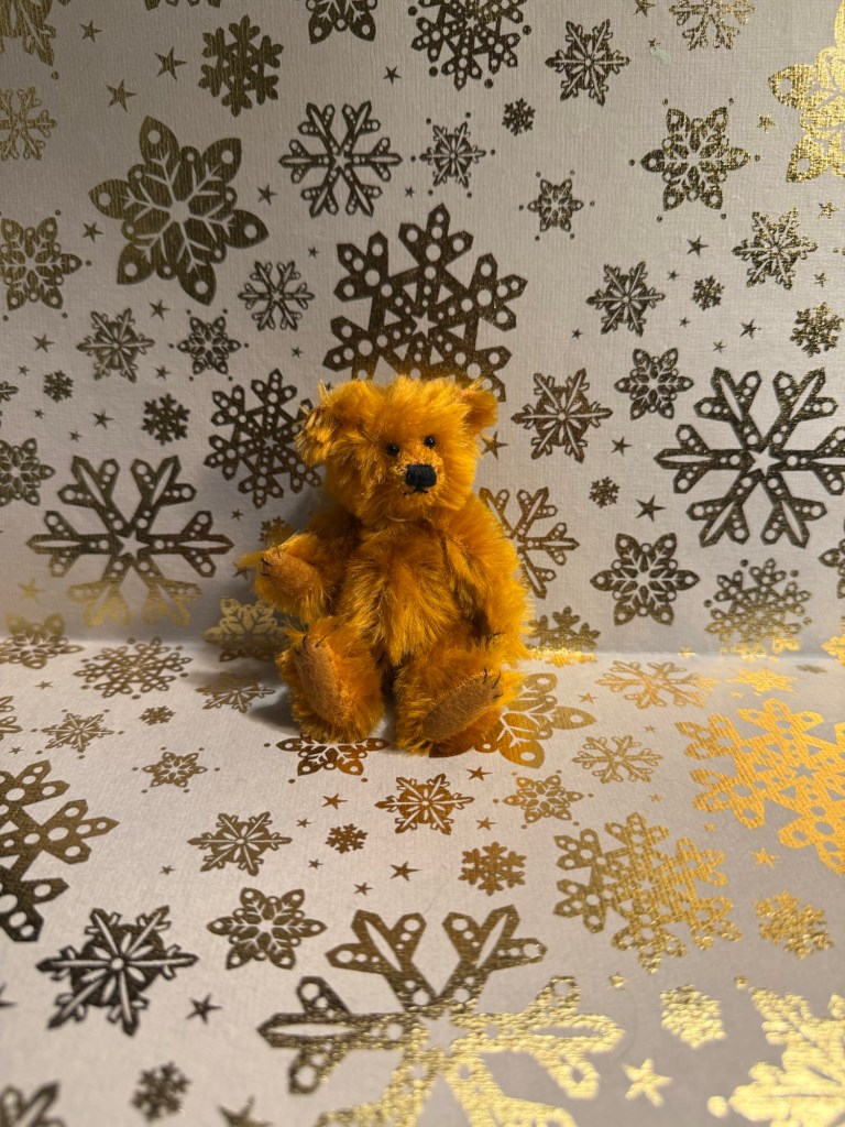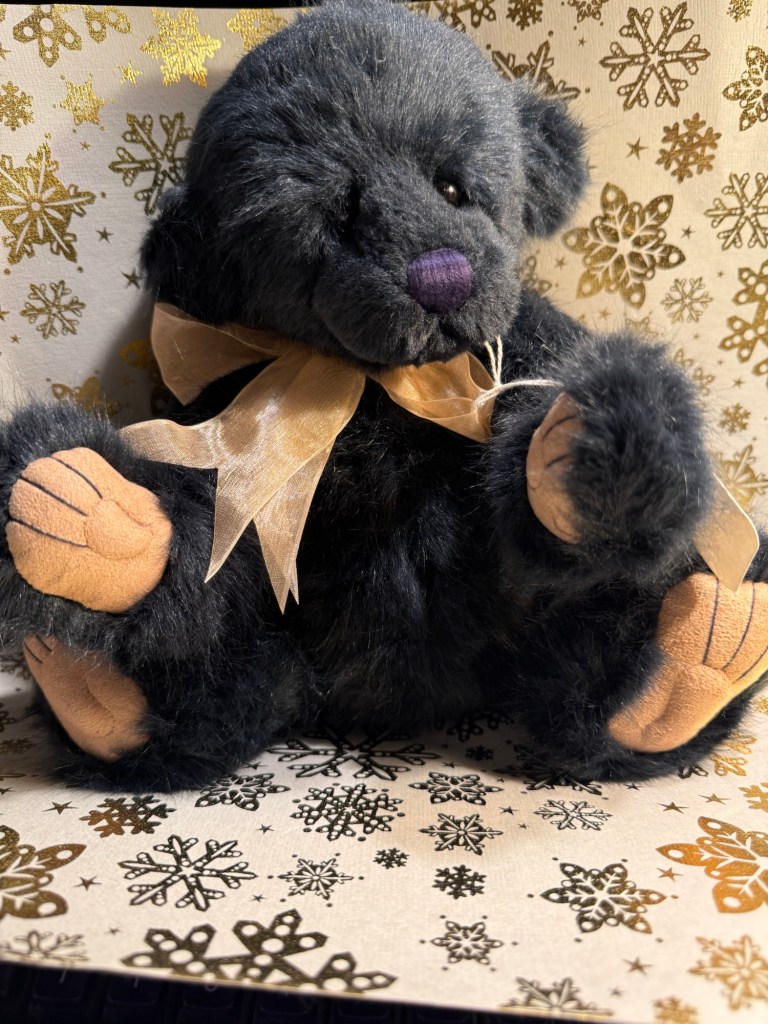 Today’s bear is a Canterbury Bear with no name. I like his “frosted tips” fur and his owl-like face (and the fact that he’s from a small maker), which is why I purchased him.