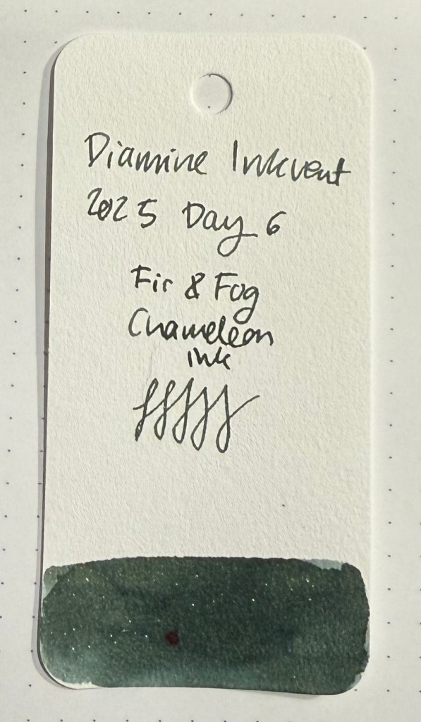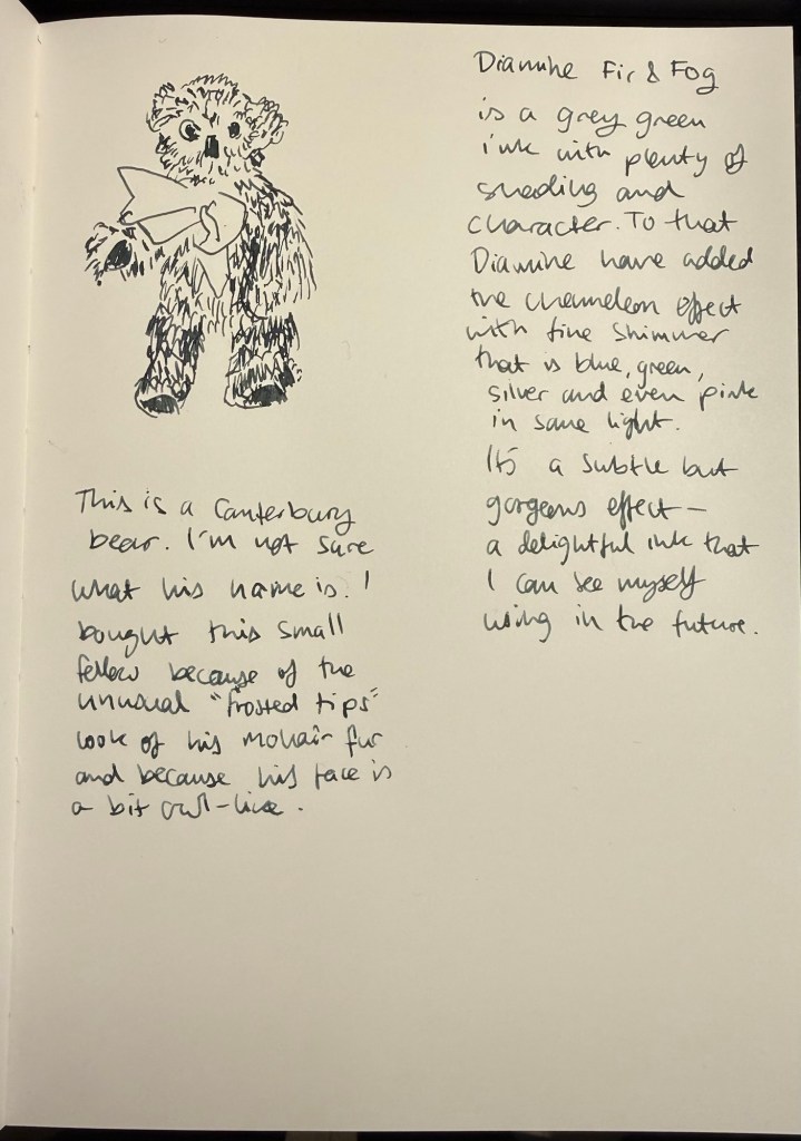 Diamine Fir & Fog is a wonderful ink, a great addition to the Inkvent calendar, and definitely an ink that I would consider purchasing a full bottle of in the future. I think it’s a great wintery ink, and it would look even better on cream coloured paper.