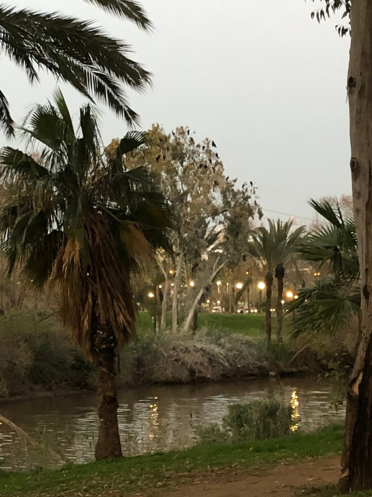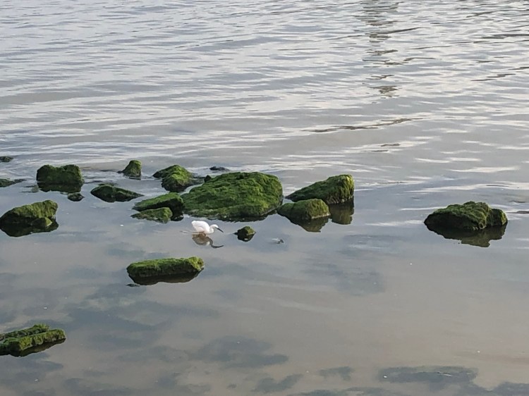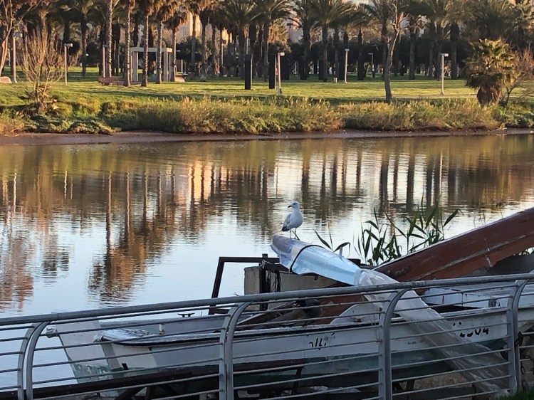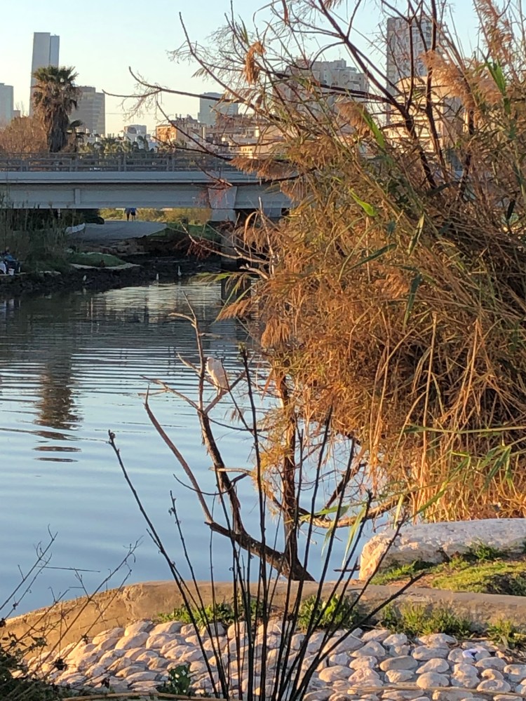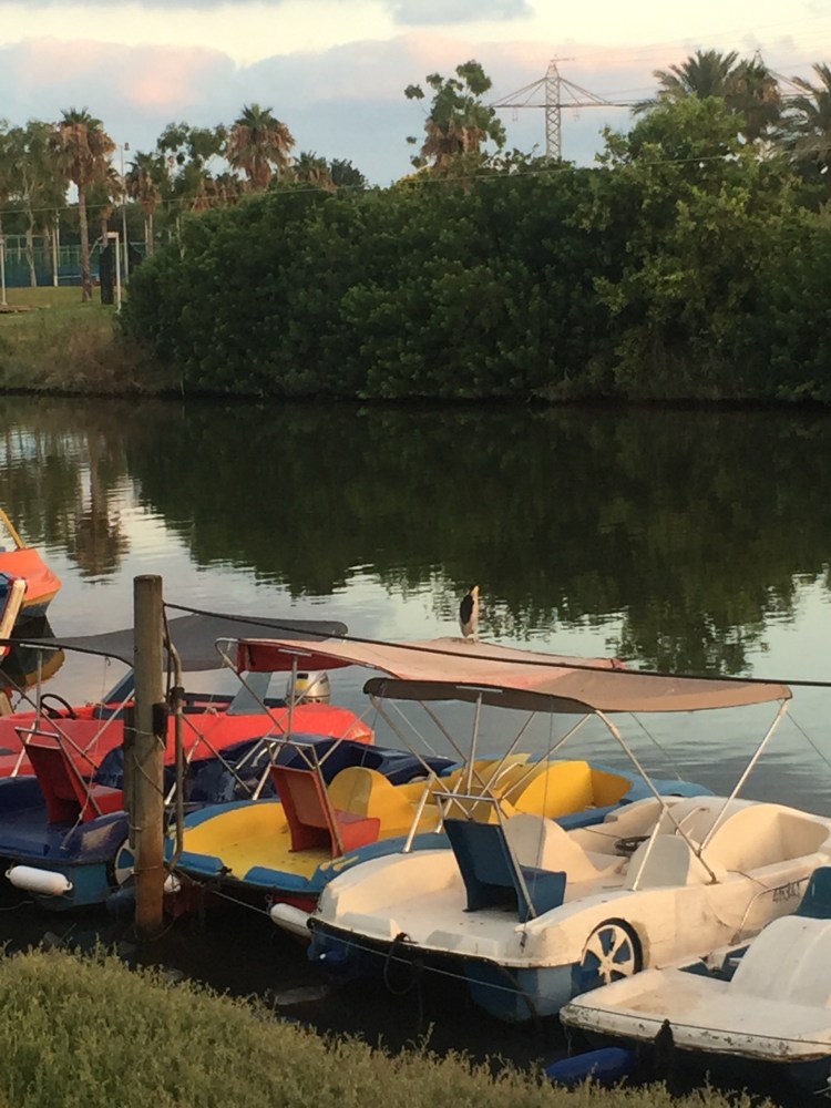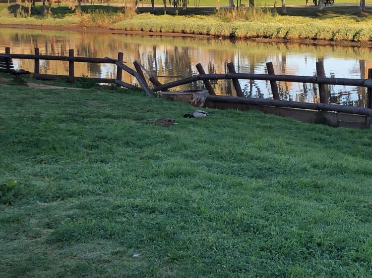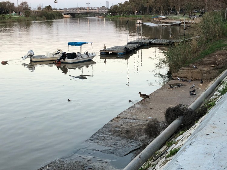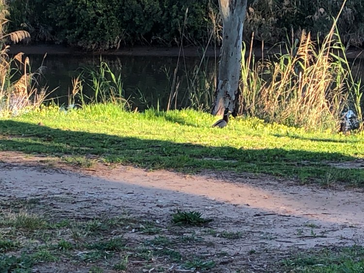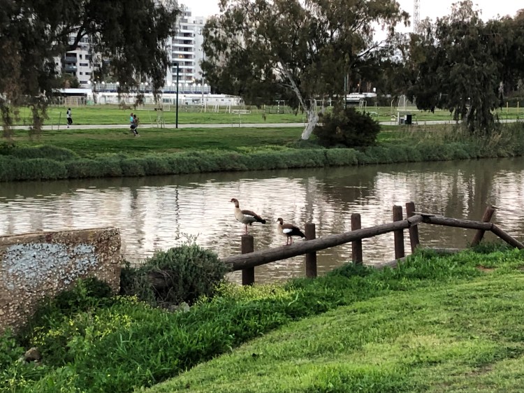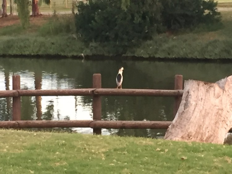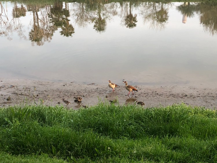 There was a convention of birds on the boat pier in the river: a pied kingfisher and two Egyptian geese were perched pretty close to each other (the kingfisher is the tiny bird on top of the pole in the centre of the photograph).