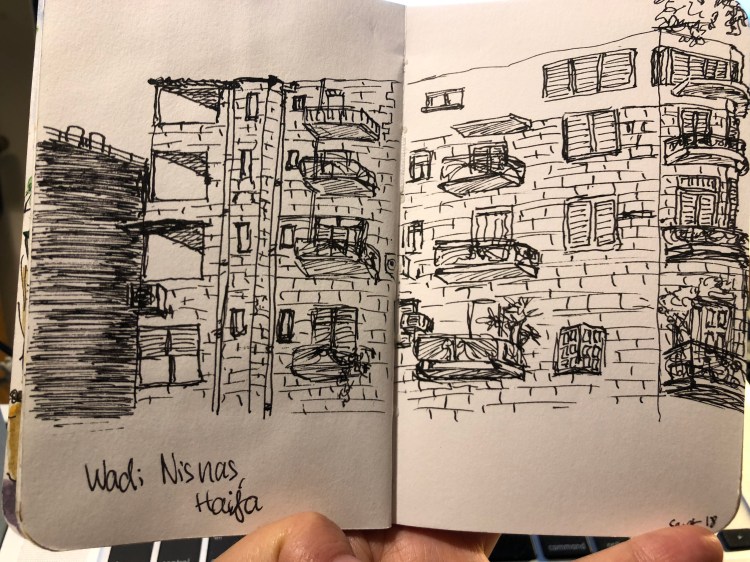 It looks like another year without winter here. I drew this during an Urban Sketchers sketch crawl, but since the sun was right in my face and it was blazing hot (31 degrees centigrade), I didn’t place the shadows properly.