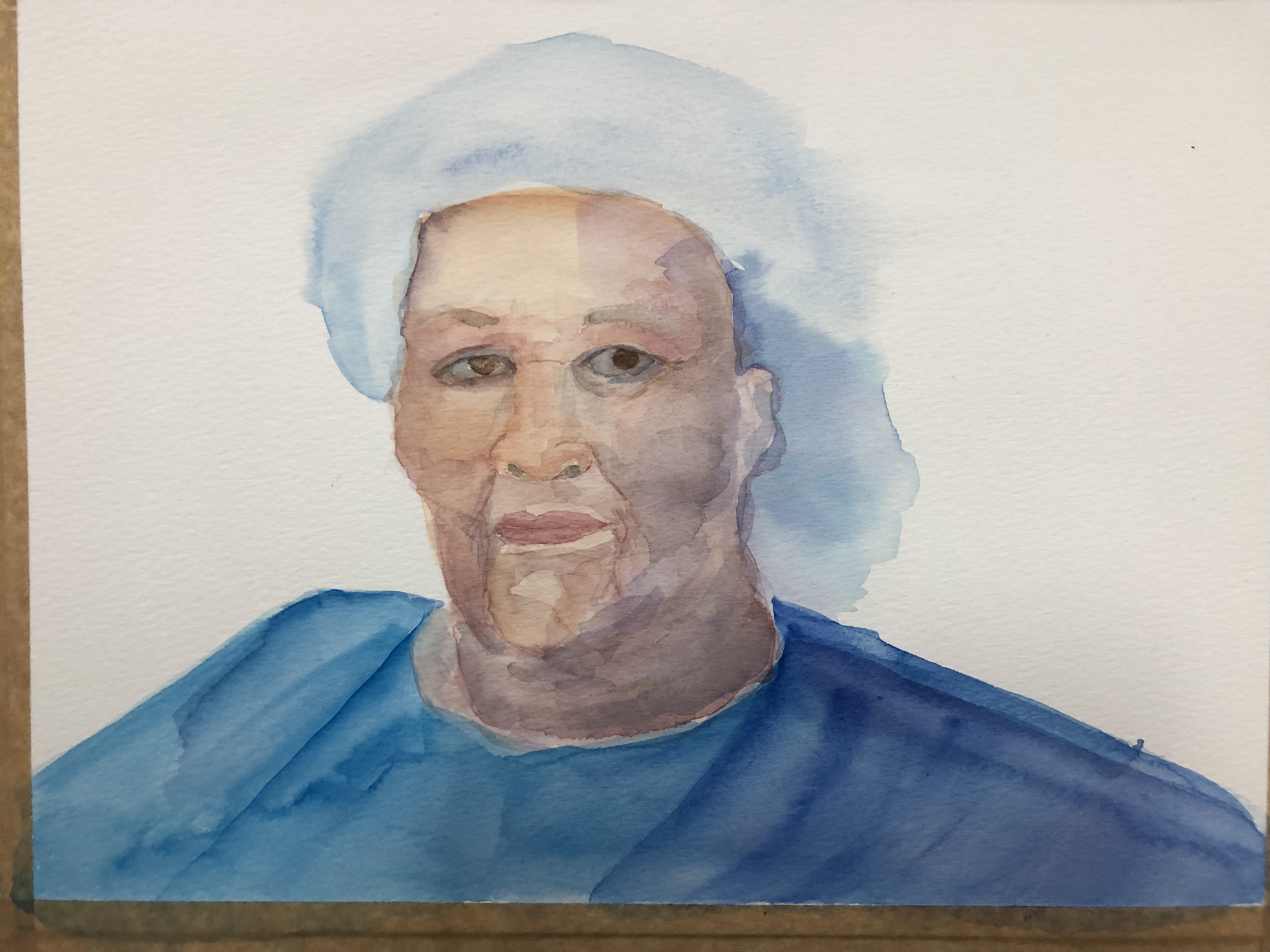 While I was sketching an elderly volunteer came for a chinwag in the shade, and then stayed and chatted for a good long while. I guess he was lonely. And later two girls came around selling cookies and lemonade for charity, so I bought a cookie and talked to them while they watched me draw and tried to sell their wares.