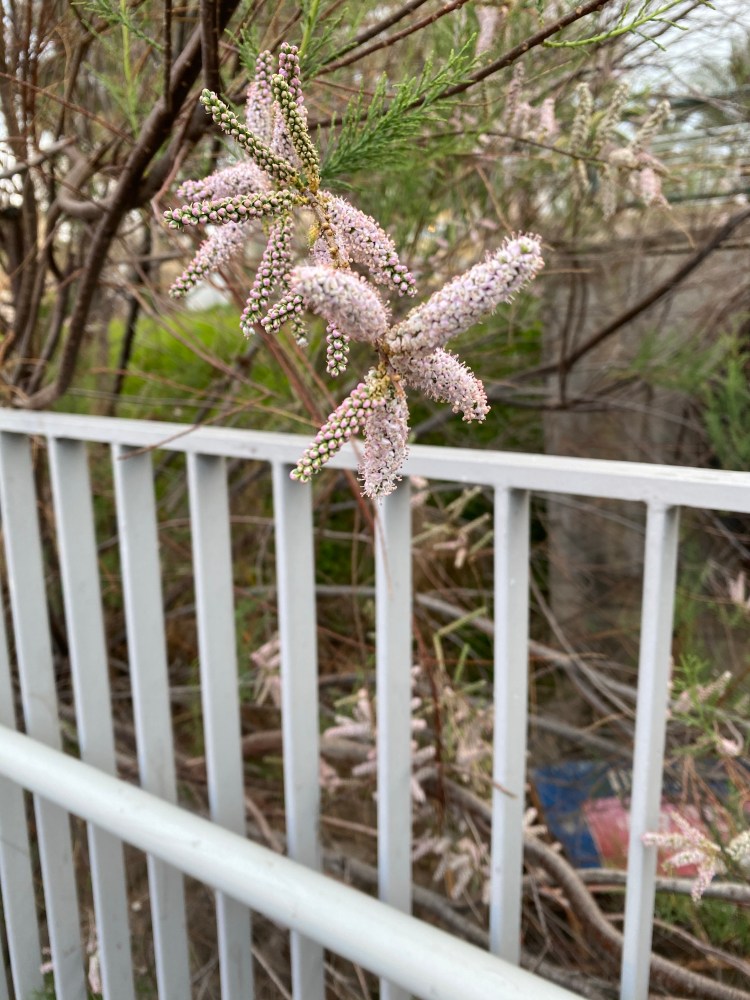 This is a Tamarisk of some kind, but I haven’t been able to nail the exact species yet.