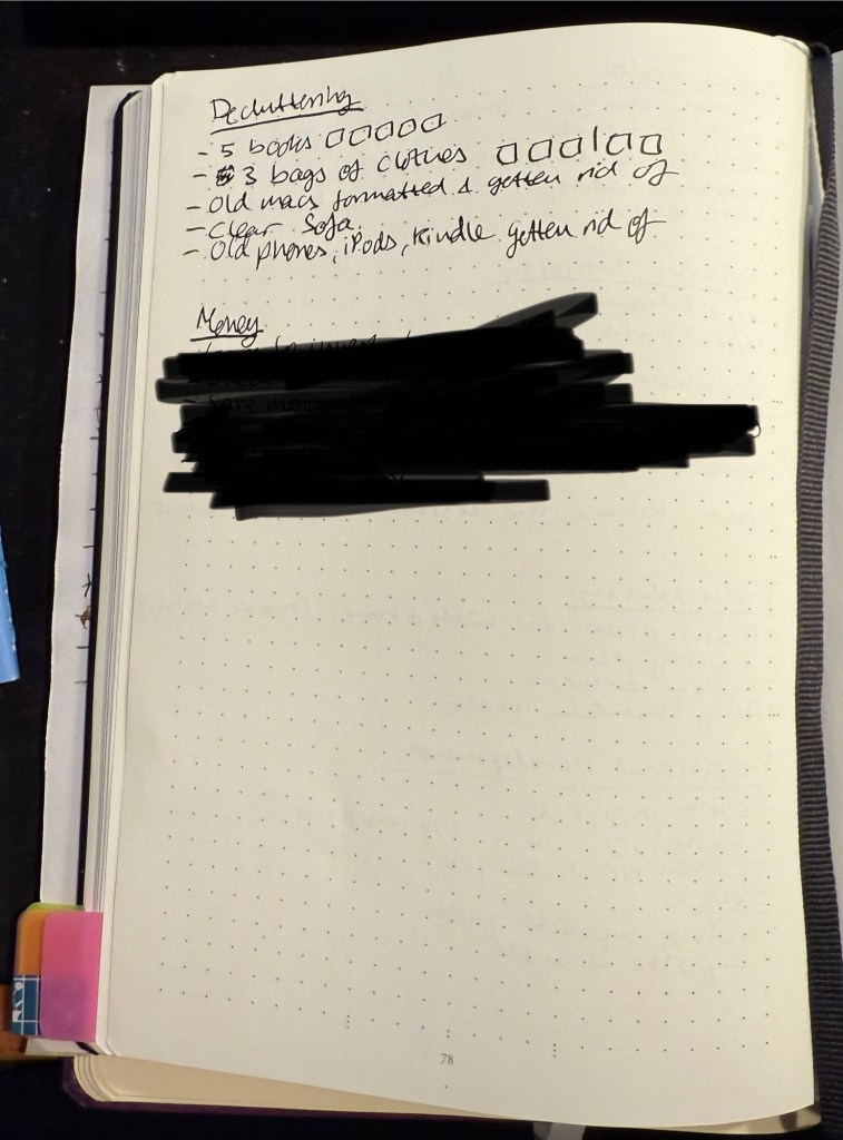 37. My journal is at that delicious phase where it’s passed the 3/4 full mark but hasn’t reached the “only a handful of pages left” mark. I recommend making it a goal to reach that phase in every notebook you use – it’s the best.