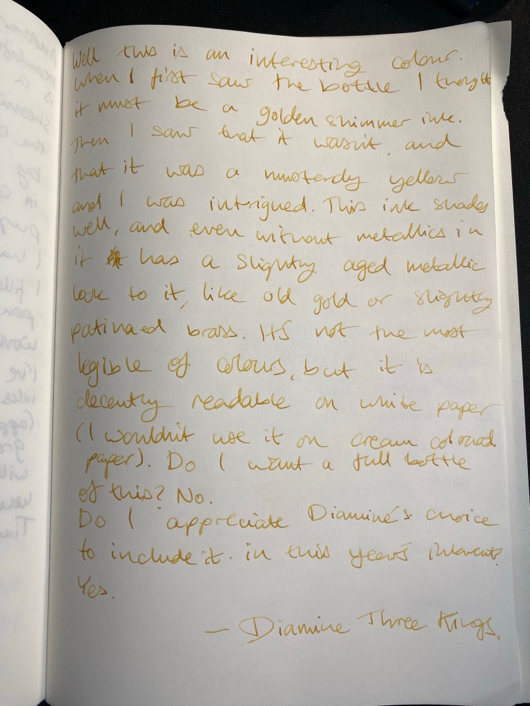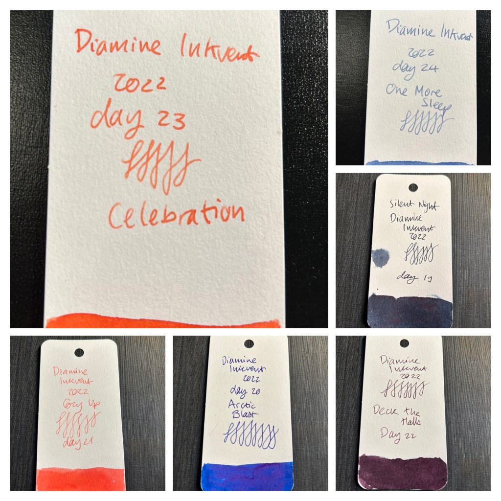 It was quite an endeavour, to fill fountain pens 25 times with ink and write, sketch and post a review of an ink a day. I don’t know if Diamine will create a 2023 Inkvent calendar, or if I will be able to write another set of reviews like this, but it was a wild and fun ride creating these reviews for the blog this year.