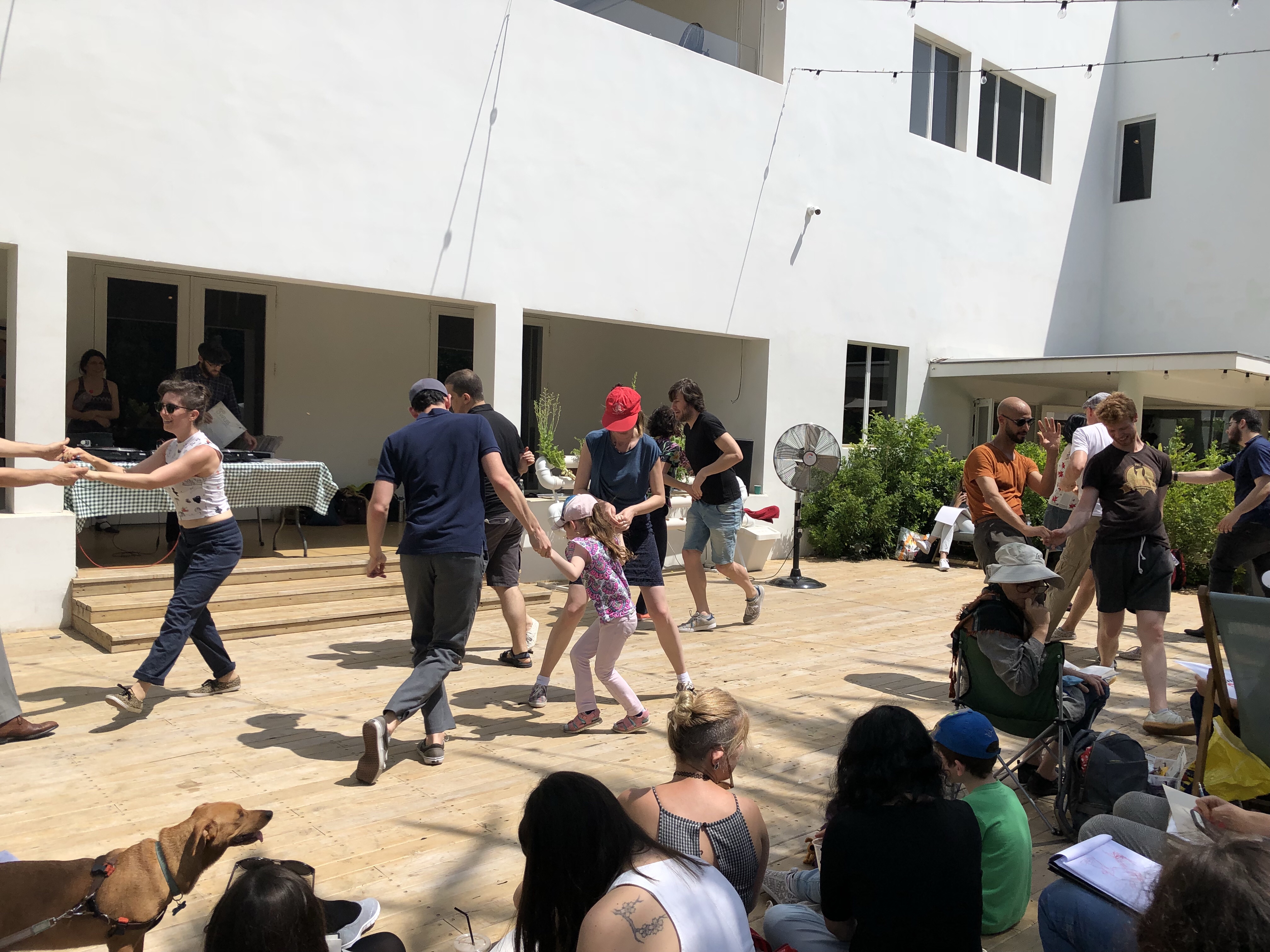 Urban Sketchers Tel Aviv met up outside Beit Chana, a local community centre, for a special Swing and Draw event. Around 20 dancers danced to Swing music out of old records played on two turntables while around 30 of us Urban Sketchers drew them. It was a lovely event and I thoroughly enjoyed myself (I managed to reach my one week 100 people challenge goal during the two and a half hours I was there). I had to leave early due to family obligations but I was so glad that I participated anyway.