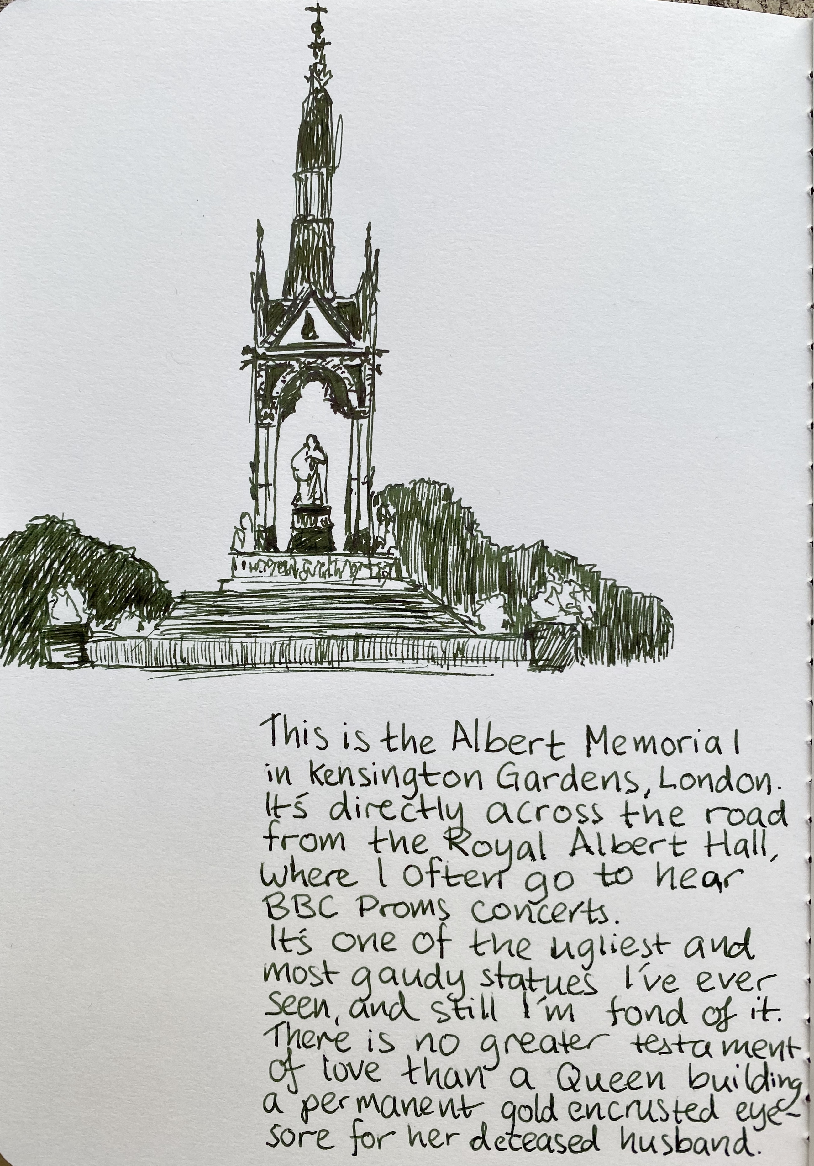 Bonus tip: If you’re starting out in watercolour on location or urban sketching, get a pencil like the Pentel Graphgear in 0.5 or 0.7 and some H leads and use that for your preliminary sketches. Even if you don’t erase them, they’ll disappear behind the washes.