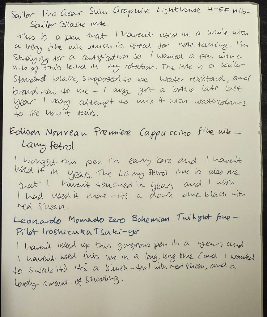 All the pens need to be pens that I haven’t used in a long time (at least a year). It was time to mix things up.