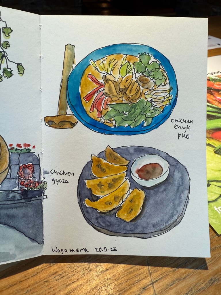 I had lunch at the nearby Wagamama for the last time, and sketched my lunch for the last time: