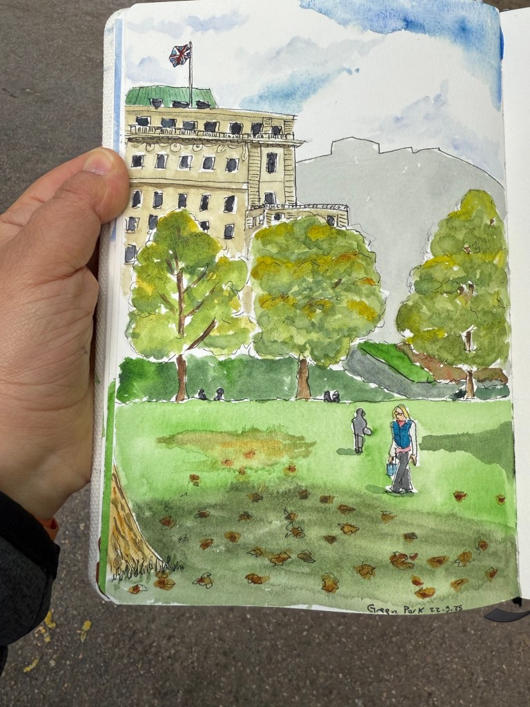 I was in a bad mood when I left and I didn’t know what to do with myself so I made my way to Green Park and sat and sketched there for a while: