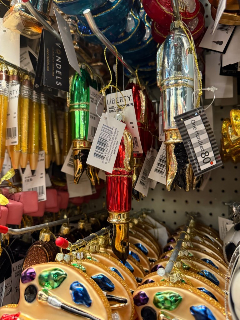 There were surprisingly few Halloween decorations out but the Christmas shops were on full blast in all the big stores. Of course I had to buy this red fountain pen ornament from Liberty: